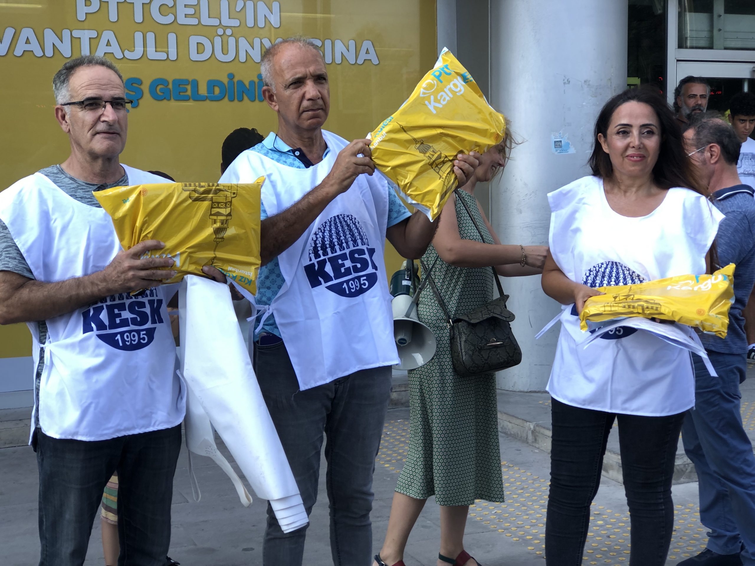Kamu Emekçileri Sendikası Konfederasyonu’na (KESK) bağlı Sağlık ve Sosyal Hizmet Emekçileri Sendikası (SES) Mersin Şubesi, banka promosyonlarına ilişkin PTT Merkez Açıklamada konuşan Sağlık ve Sosyal Hizmet Emekçileri Sendikası (SES) Şube Yöneticisi Filiz Çelebi, banka promosyonları ve artan enflasyona tepki gösterdi.