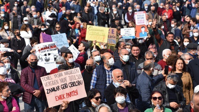 MERSİN – Mersin’de “Artık yeter geçinemiyoruz” şiarıyla yapılan mitingde bir araya gelen binlerce kişi, iktidara zamların geri alınması çağrısı yaptı.