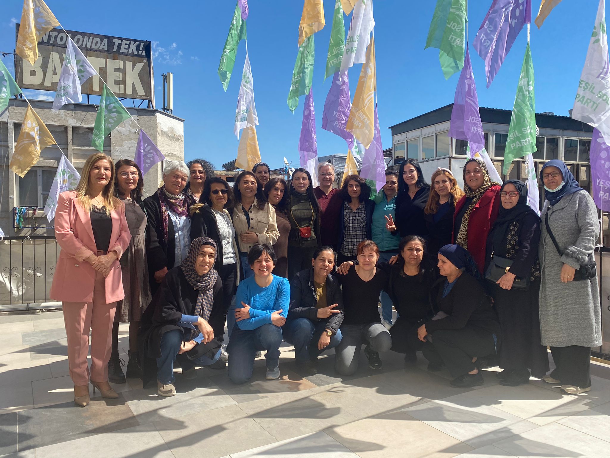 Mersin’de önceki gün bileşen parti ve kurum temsilcileriyle gerçekleştirilen geniş katılımlı toplantıyla seçim startını veren Yeşil Sol Parti’de kadınlar, 14 Mayıs Cumhurbaşkanlığı ve parlamento seçimlerinde güçlü bir örgütlülükle sandıkları yeşile bürüyeceklerinin mesajını verdi. Demokratik Bölgeler Partisi (DBP) Çukurova Eş Sözcüsü Yeter Güzel, “Bu seçimin en büyük kazananları kadınlar olacak” dedi.