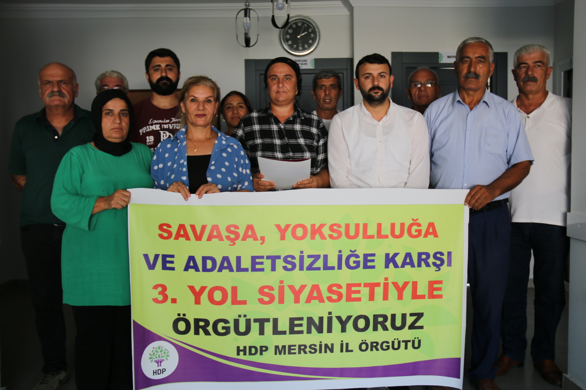 Halkların Demokratik Partisi (HDP) Akdeniz İlçe Örgtü, 4’üncü olağan kongresinin startını verdi. İlçe binasında yapılan açıklamaya il eşbaşkanları Bedriye Kuş ile Hoşyar Sarıyıldız ve partililer katıldı. “Savaşa, yoksulluğa ve adaletsizliğe karşı 3. yol siyasetiyle örgütleniyoruz” pankartın açıldığı açıklamada kongre komisyonu adına konuşan Havva Tekin, kongreye startını verdiklerini söyledi.
