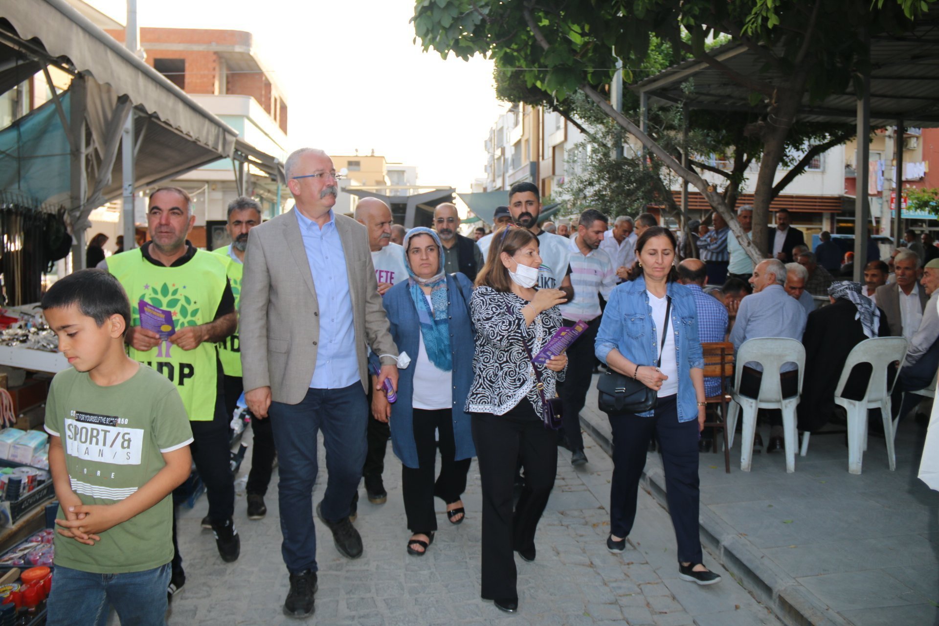 Güneş Mahallesi’nde kurulan Cuma Pazarı’nda bildiri dağıtan HDP’liler, yurttaşların ve esnafın yoğun ilgisiyle karşılaştı.  “Harami düzenine son vereceğiz” ve “Biji Yek Gulan”  slogan atan HDP’liler alkışlarla karşılaştı. Cuma Pazarı ardından Hal Mahallesi’nde samit olan pazara geçen HDP’liler bildirilerini buralarda da dağıttı. Bildiri dağıtımı sırasında yurttaşlara seslenen vekil Rıdvan Turan, “Kürt halkına karşı yürütülen savaşa, derinleştirilen tecride, yoksulluğa, talana karşı 1 Mayıs’ta sesimizi yükseltelim. Harami düzeni değiştirelim” şeklinde ifadeler kullandı.