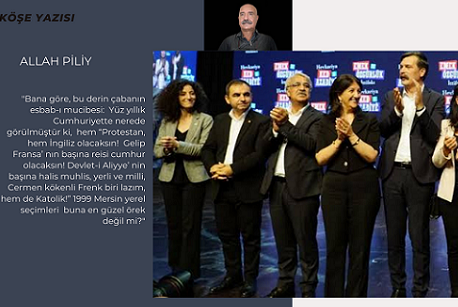 Bana göre, bu derin çabanın esbab-ı mucibesi: Yüz yıllık Cumhuriyette nerede görülmüştür ki, hem “Protestan, hem İngiliz olacaksın! Gelip Fransa’ nın başına reisi cumhur olacaksın! Devlet-i Aliyye’ nin başına halis muhlis, yerli ve milli, Cermen kökenli Frenk biri lazım, hem de Katolik!” 1999 Mersin yerel seçimleri buna en güzel örnek değil mi?