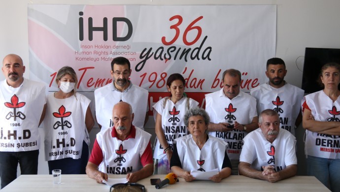 İnsan Hakları Derneği (İHD) Mersin Şubesi, İHD’nin 36’ncı kuruluş yıldönümü dolayısıyla dernek binasında açıklama yaptı. “İHD 36 yaşında, 17 Temmuz 1986’dan bugüne” yazılı pankartın açıldığı açıklamaya, Mersin Emek ve Demokrasi Platformu bileşenleri katıldı. Açıklama metninin ilk bölümü İHD Mersin Şubesi Eşbaşkanı Hakkı Demir tarafından okundu.