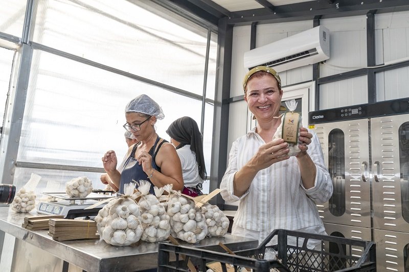 Mersin Büyükşehir Belediyesi’nin Organik Tarım Projesi’nden faydalanarak gübre, organik üretim eğitimi ve sertifika ücreti desteği alan Tarsus’un Beylice Mahallesi’ndeki üretici Arzu Esmeci, 11 dönümlük arazisine ektiği organik sarımsakları topladı. Mersinden Kadın Kooperatifi, organik sarımsakları temizleyerek tüketiciye ulaştırılması için hazır hale getiren Esmeci’ye ulaştı ve elindeki sarımsakları satın aldı. Kooperatifin işlettiği ve organik ürün sertifikasına sahip ‘Mersinden Güneş Enerjisi İle Organik Sertifikalı Kurutma Tesisi’nde paketlenen sarımsaklar, kooperatif eliyle ulusal zincir marketlerde satışa sunulacak. Mersin Büyükşehir Belediyesi Tarımsal Hizmetler Dairesi bünyesinde, sağlıklı üretimi yaygınlaştırmak adına geliştirilen ‘Organik Tarım Projesi’, üreticinin yüzünü güldürüyor. Büyükşehir Belediyesi proje kapsamında; Toroslar ve Tarsus ilçesinde 100 üreticiye ulaştı. Geçtiğimiz yıl, her üreticiye organik tarım eğitimi ve sertifikasyon ücretleri konusunda destek veren Büyükşehir, sertifikalarını alan organik tarım üreticilerine de 250’şer kilo gübre desteği sağladı. Mersinden Kadın Kooperatifi de, elde edilen ürünün pazara sunulması konusunda organik üreticilerle iş birliği yapıyor.