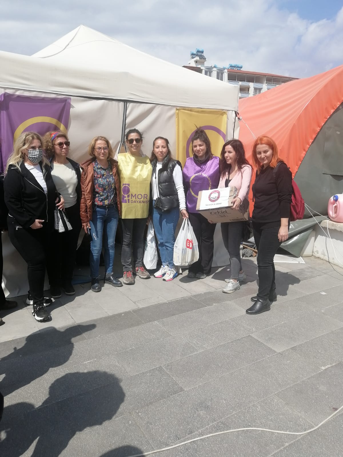 Mersin Barosu Kadın Hakları Merkezi Başkanı Av. Arzu Günay, merkez üyesi Av. Ayfer Coşkun, beraberinde Mersin Büyükşehir Belediyesi Kadın ve Aile Hizmetleri Daire Başkanı Şerife Hasoğlu ile birlikte Hatay’da Mor Dayanışma Merkezlerine ve Vakıflı Mahallesi Kadın Kooperatifini ziyaret ederek, bölgedeki depremzede kadınlar ve çocuklara ulaştırılmak üzere çok sayıda hijyenik ürün, bebek bezi ve mama yardımı yaptı. Ayrıca, deprem bölgesindeki kadınların üretimine destek olmak için fikir alışverişinde bulunuldu.