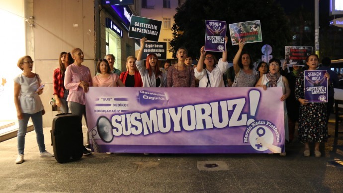 Mersin Kadın Platformu, Şebnem Korur Fincancı’nın tutuklanmasını ve gazetecilerin işkenceyle gözaltına alınmasını “Yaratmaya çalışılan korku iklimine, saldırılara karşı susmuyoruz” diyerek protesto etti.