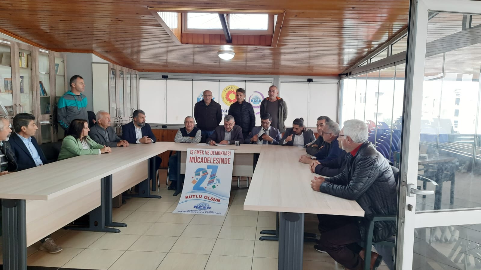 Kamu Emekçileri Sendikaları Konfederasyonu (KESK) Mersin Şubeler Platformu, Eğitim ve Bilim Emekçileri Sendikası’nda (Eğitim Sen) düzenlediği basın toplantısıyla KESK’in 27’nci kuruluş yıldönümünü kutladı.