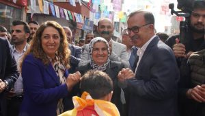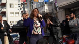 Em di dem û dîrokeke taybet de hilbijartinê pêşwazî dikin. Ev hilbijartin çima dîrokî ye. Sedsala Komarê 2023 ye. Sedsala peymana Lozanê jî 2023 ye. Di Lozanê de xwestin gelê Kurd parçe bikin, ji ziman û ji çanda wî ji erdnîgariya wî dûr bixin. Lê gelê me çû kuderê bi zimanê xwe bi çanda xwe bi hebûna xwe bi destkeftinên xwe parastina xwe kir. Îro em li Mersînê ne. Mersîn bûye Kurdistana biçûk. Her bijî ji we re. Ev hilbijartin çima giring e. Ev hilbijartin di navbera faşîzm û demokrasiyê de derbas dibe. Hinek dixwazin faşîzmê mayînde bikin. Lê gelê me, jin, ciwan, demokrasî dixwazin, ji bo pêşeroja azad dixwazin demokrasiyê ava bikin. Hilbijartin di navbera van herdu hêzan de ye. Faşîzm bi polîtîkayên şer bi polîtîkayên qeyûm û tecrîdê dixwazin gelê Kurd di bin tecrîdê de bihêlin. Lê em li hemberî, şer tecrîdê, li hemberî qirkirina jinê, şerê qirêj têkoşîna demokrasiyê didin û di 14’ê Gulanê de em ê wan def bikin. Bes ji wan re 22 sal in îktîdar tenê neyartiya gelan, neyartiya Kurdan dike û tecrîdê dizane. Tiştekî dizane, polîtîkayên qeyûm, desteserkirina îradeyê dizane. Lê em li hemberî vê yekê têkoşîna aştiyeke birûmet jiyaneke wekhev pergeleke azad didin û di 14’ê Gulanê de em ê ji bo avakirina azadiyê mohra xwe li bin Partiya Çepên Kesk bixin. Ev îktîdar dê winda bike.