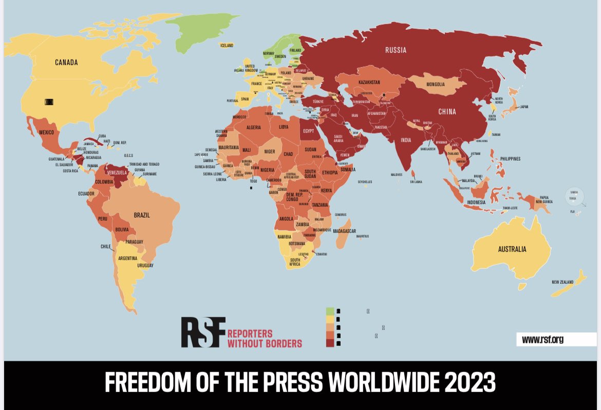 Sınır Tanımayan Gazeteciler (RSF) örgütü, 3 Mayıs Dünya Basın Özgürlüğü Günü nedeniyle 2023 Dünya Basın Özgürlüğü Endeksi’ni yayınladı. Endekse göre Türkiye, 180 ülke arasında 165’inci sırada yer aldı. Türkiye’nin düşük notuna “gazetecilere yönelik baskıya hız verilmesi”, “özellikle Kürt gazetecilere yönelik toplu tutuklamalar” ve “medya özgürlüğünü tehdit eden sosyal faktörler” gerekçe gösterildi.