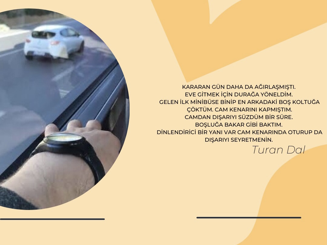 Bu kadar bir konuşmayla belki de çok şey anlattığını düşünerek ya da anlattığı şeylerin ilacını bulamamış gibi yine gözlerini camdan dışarıya döndü.