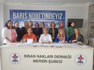 İnsan Hakları Derneği (İHD) Kadın Komisyonu, 25 Kasım Kadına Yönelik Şiddetle Uluslararası Mücadele Günü eylem ve etkinlikleri kapsamında tutuklu kadınlara kart ve mektup gönderdi. Mektup gönderme etkinliği öncesi yapılan açıklamaya İHD Mersin ŞUBE Eşbaşkanı Zeynep Benli, Mersin Kadın Platformu bileşenleri, Halkların Demokratik Partisi (HDP) ile Demokratik Bölgeler Partisi (DBP) üyesi kadınlar, Tevgera Jinen Azad (TAJ) aktivistleri ve Mimoza Kadın Derneği Başkanı Çiğdem Göksoy ve İHD’li kadınlar katıldı. Dernek binasında yapılan açıklamada İHD Mersin Şube Eşbaşkanı Zeynep Benli konuştu.