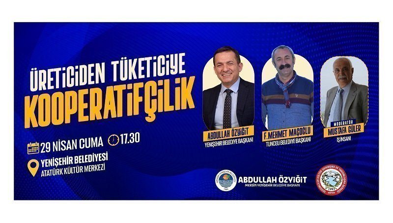 Mersin Yenişehir Belediyesi ve Mersin Dersimliler Derneği iş birliğiyle “Üreticiden Tüketiciye Kooperatifçilik” paneli düzenlenecek. Kooperatifçilik konusunda örnek gösterilen başarılı çalışmalara imza atan Yenişehir Belediye Başkanı Abdullah Özyiğit ve Tunceli Belediye Başkanı Fatih Mehmet Maçoğlu panelde konuşmacı olacak.